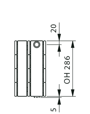 B) Attacchi verticali verso il basso: su richiesta è possibile realizzare dietro sovrapprezzo una versione speciale con attacchi a 142, 214 e 286 mm di altezza, per mandata e ritorno verticali verso il basso.