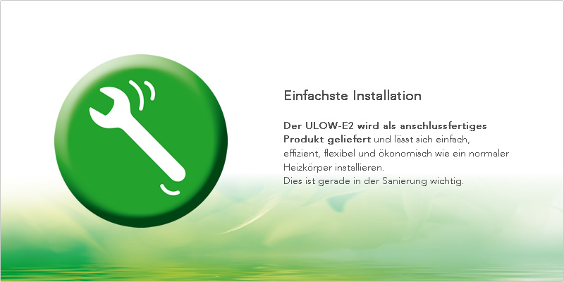 De ULOW-E2 wordt als een gereed product geleverd en kan eenvoudig, efficiënt, flexibel en economisch als een normale radiateur worden geïnstalleerd.