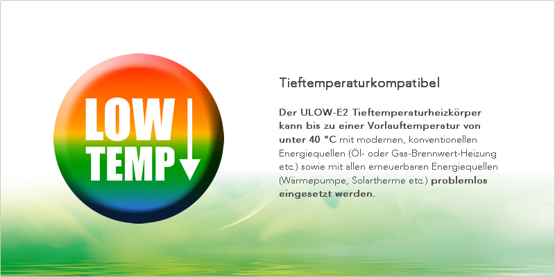 De ULOW-E2 is geschikt voor zowel nieuwbouw als ook bij thermisch gerenoveerde gebouwen. Vooral in combinatie met hernieuwbare energiebronnen (warmtepompen, thermische zonne-energie, condensatieketels, etc.) is hij een belangrijk onderdeel in de moderne lage-temperatuur-verwarmingssystemen.