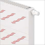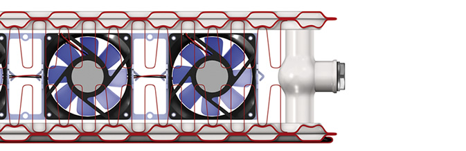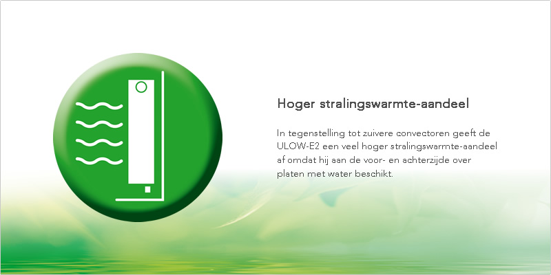 In tegenstelling tot zuivere convectoren geeft de ULOW-E2 een veel hoger stralingswarmte-aandeel af omdat hij aan de voor- en achterzijde over platen met water beschikt.