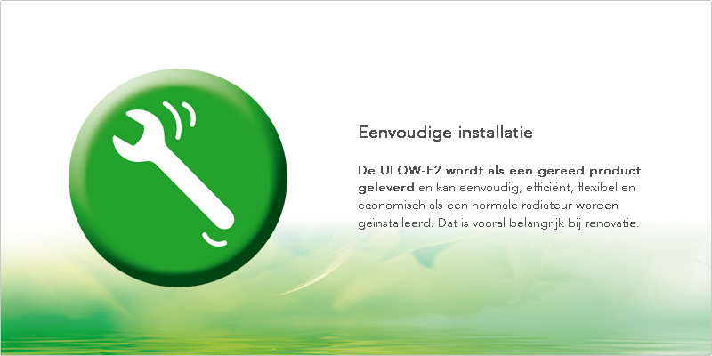 De ULOW-E2 wordt als een gereed product geleverd en kan eenvoudig, efficiënt, flexibel en economisch als een normale radiateur worden geïnstalleerd.