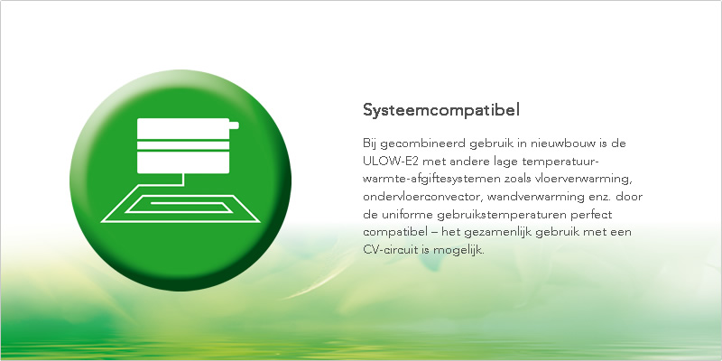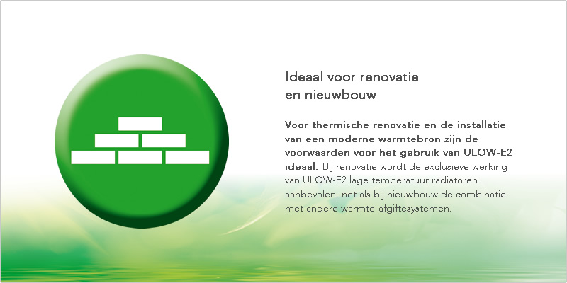 De ULOW-E2 is geschikt voor zowel nieuwbouw als ook bij thermisch gerenoveerde gebouwen. Vooral in combinatie met hernieuwbare energiebronnen (warmtepompen, thermische zonne-energie, condensatieketels, etc.) is hij een belangrijk onderdeel in de moderne lage-temperatuur-verwarmingssystemen.