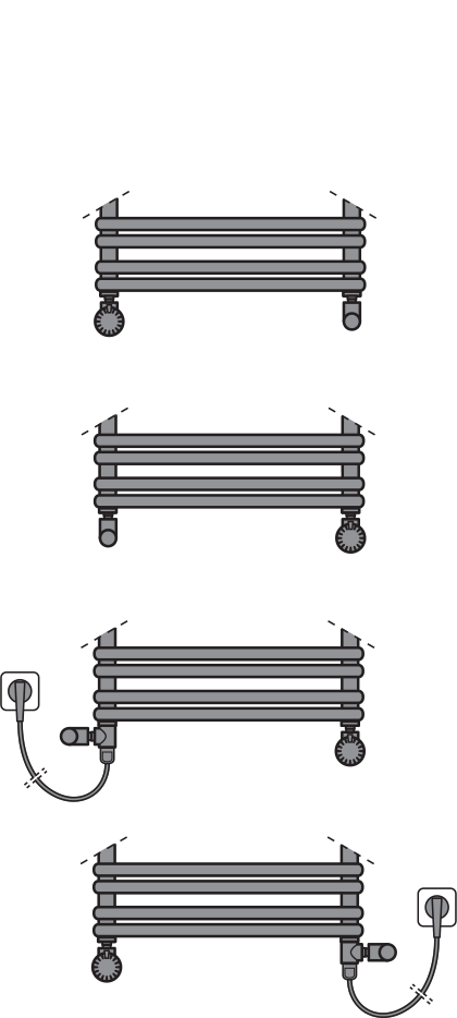 Do podłączenia grzałki elektrycznej do grzejnika dekoracyjnego GRAZ należy użyć specjalnego łącznika (chromowanego)!